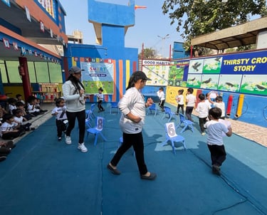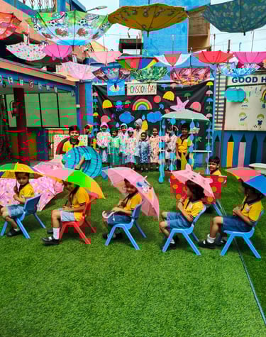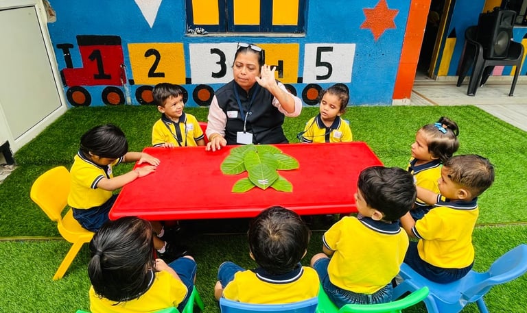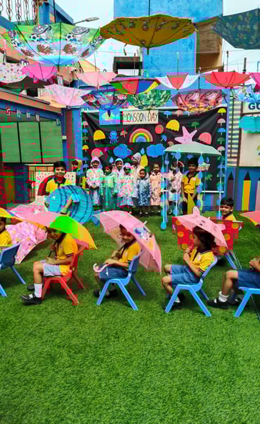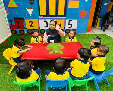 Our little artists express creativity with paints and crafts, filling the room with vibrant colors and joyful energy.
